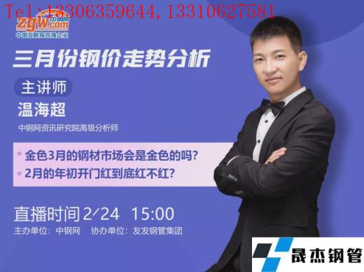 3月旺季臨近,精密鋼管市場會是金色的嗎?在庫存大幅走高,鋼價如何演繹?伴隨著政策監管日益趨嚴,鐵礦石價格大跌之后,一季度還存在哪些機會?更多熱點資訊,請關注2月24日下午三點,2022年三月份行情直播會,河南銀商通實業有限公司總經理孫建、資訊研究院高級分析師溫海超等,圍繞著“市場精密鋼管需求方向解析”、“當下政策的影響”、“影響鋼價熱點話題”、“3月份鋼價走勢預測”等熱點話題鞭辟入里、層層分析。