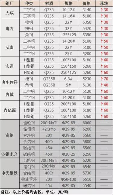 漲幅最高為山東傳洋槽鋼;