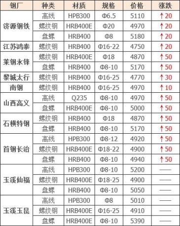 3月4日廣東河源德潤鋼鐵廢精密管價格格跌30元:鋼筋切粒3500;邊角料,新鋼板料3470;純鋼筋頭,直鋼筋3450;模具鋼、料頭圓鋼、軌道鋼、火車輪3450;硅鋼片停收;冷軋、熱軋、碎料沖子3400;優重3450;鍛打料、馬蹄鐵3450;重廢3420;機械生鐵、高碳鋼、鑄鋼件、生熟混裝3420;厚剪3370,不含稅。