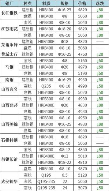 下調18家,占比81.8%,調價幅度20-80元/噸,