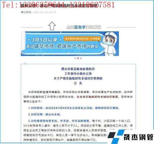 突發!唐山全域性封控,鋼市影響升級